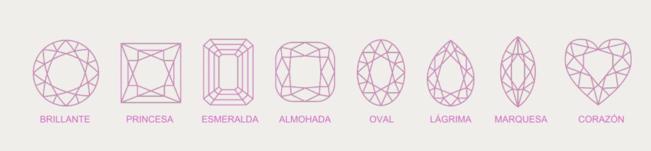 Podemos encontrar diamantes en varias tallas o formas distintas, desde el más popular diamante redondo conocido como talla brillante, hasta formas tan creativas como diamantes en forma de corazón o diamantes de corte marquesa o lágrima, pasando por algunos otros más conocidos como los diamantes ovalados o princesa, que cada vez son más populares.